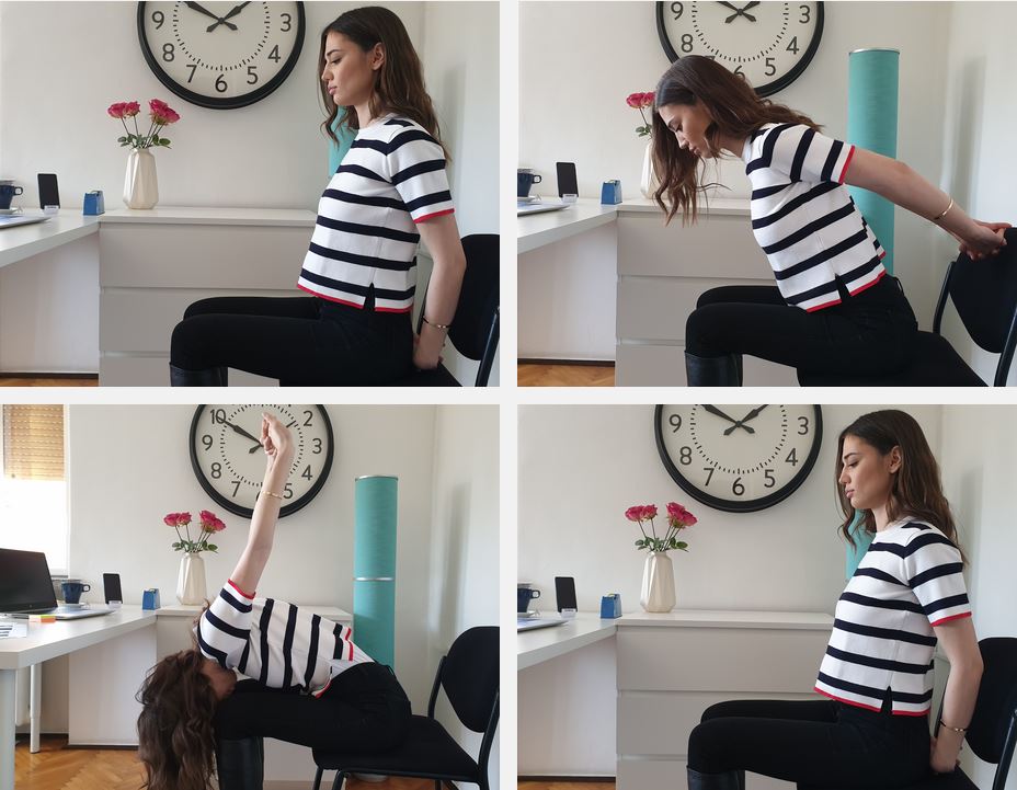 - Intertwine your fingers behind your back.