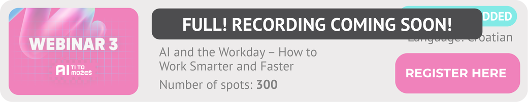 Get your online course “AI ti to možeš” for 0.00 EUR in the LPC shop. It includes recordings of past webinars, the opportunity to earn certificates, and upcoming webinars you can sign up for.