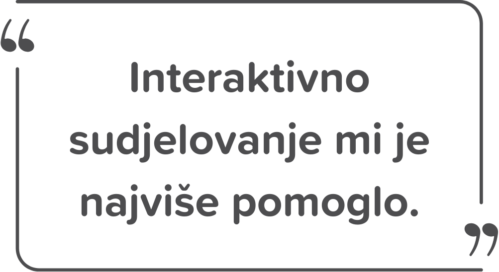 • Isprobaju i aktiviraju naučeno – interaktivni format omogućuje vam lakšu primjenu u poslovnom i privatnom životu.