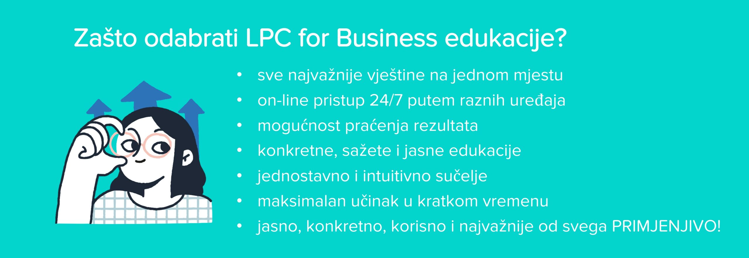 Kako bi se lakše uhvatili ukoštac sa svim ovim zahtjevima koje uloga poduzetnika donosi, uz LPC for Business edukaciju Poduzetništvo prenosimo vam ključne i korisne vještine. Čekaju vas zanimljivi programi, interaktivni alati i konkretne upute koje možete lako primijeniti na svakodnevne situacije.
