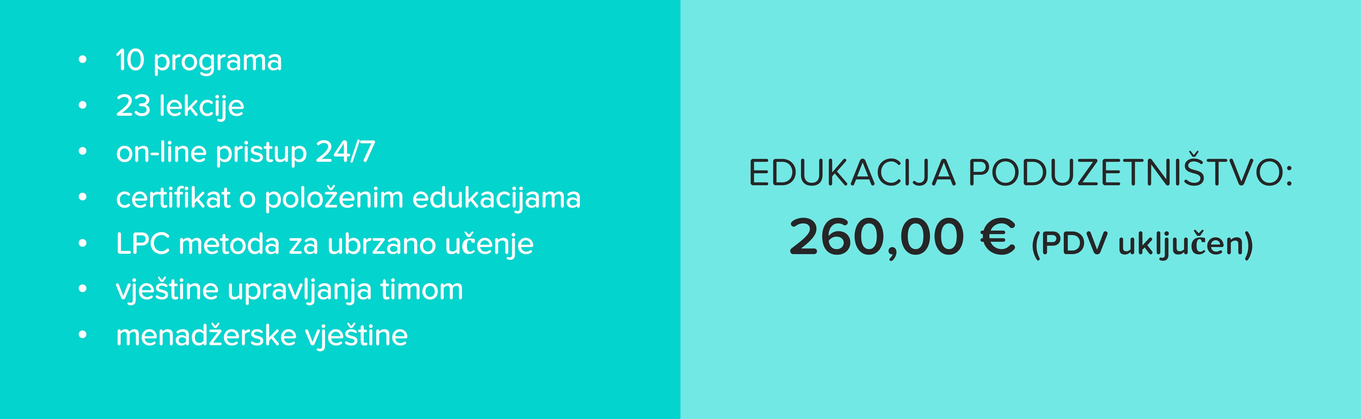 Poduzetnik koji radi na sebi na putu je do dugoročnog uspjeha! Online edukacija Poduzetništvo pomoći će vam pronaći i iskoristiti sve potencijale koje imate!